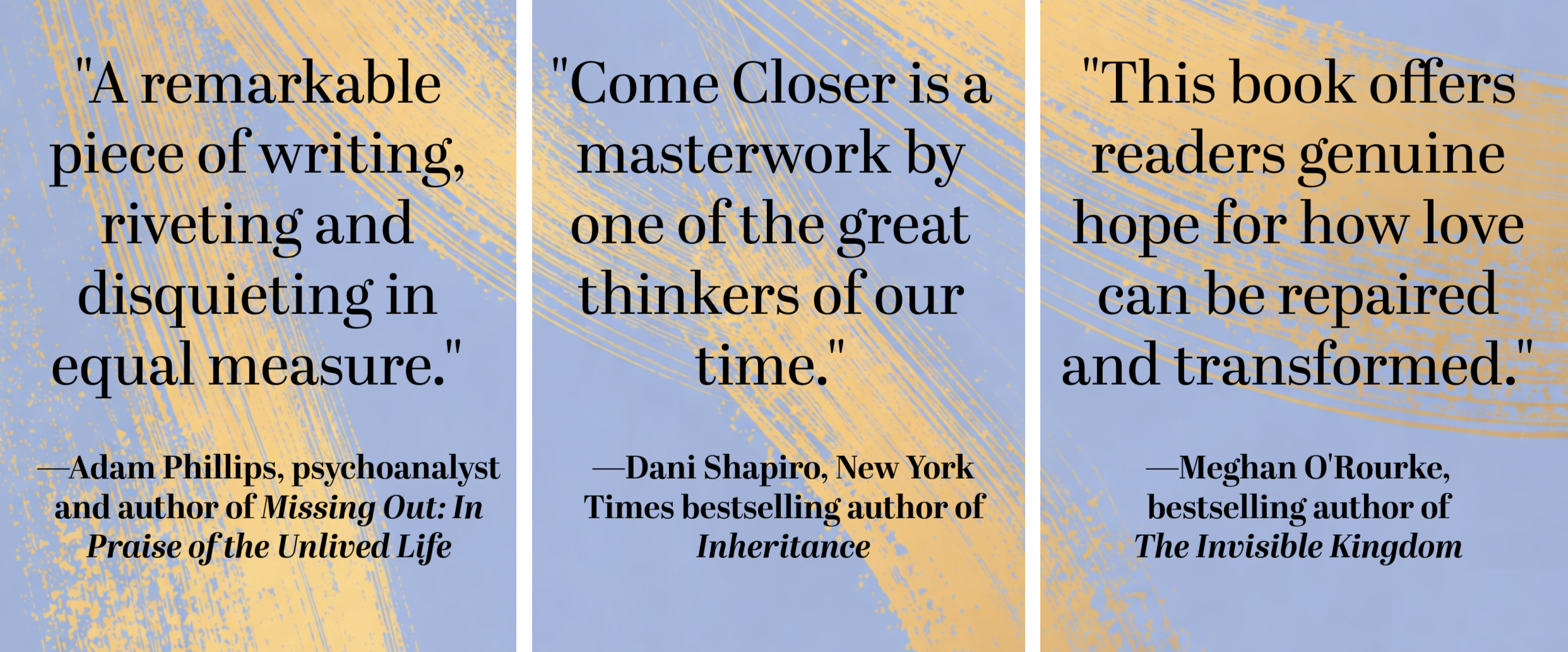 In Come Closer, Galit Atlas invites us inside the private lives of her patients—and into her own—to offer new, life-changing answers to these important questions. Atlas has identified six child archetypes—the frightened child, the melancholic child, the ashamed child, the invisible child, the guilty child, and the chosen child—and in these pages, she shows how each childhood wound plays out in our adult relationships.